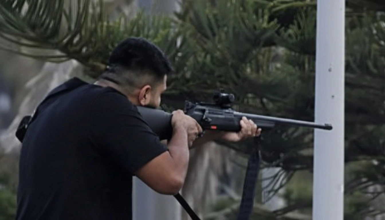 Ahmed melingkarkan lengan kanannya di bahu Sajid. Dengan tangan lainnya, ia berhasil merebut senjata kaliber tinggi dari genggaman pelaku.